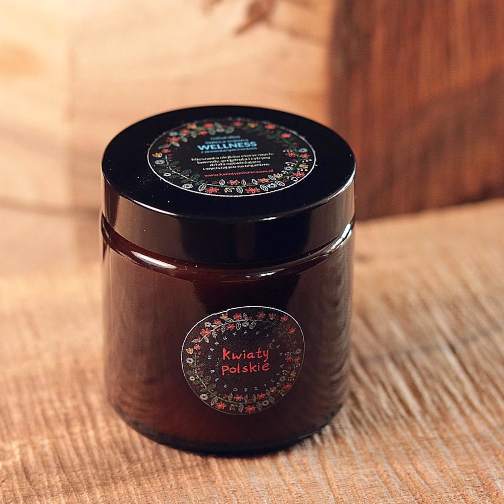 Odkryj czar aromatu i światła, zamknięty w eleganckim, „aptecznym” słoiku o głębokim brązowym odcieniu. Po odkręceniu nakładki zatrzymaj oddech i pozwól sobie na chwilę rozkoszy, wciągając głęboko aromat naturalnych olejków eterycznych. Pozwól naturze otulić Cię i rozpieścić Twoje zmysły, przenosząc się w świat relaksu i harmonii.