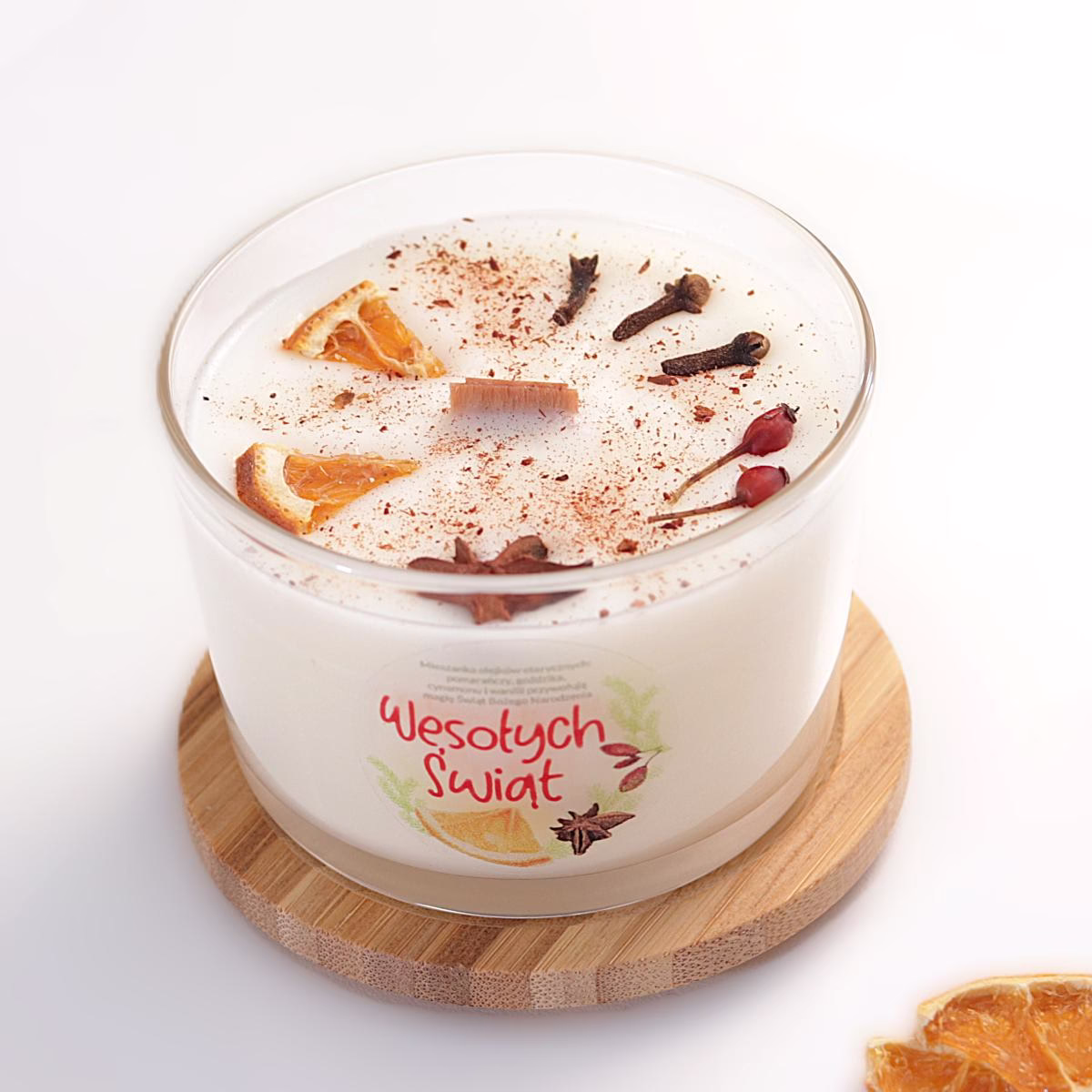 🍊Naturalna Sojowa Świeca z Drewnianym Knotem o Świątecznym Zapachu