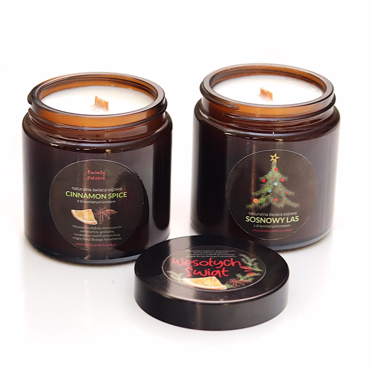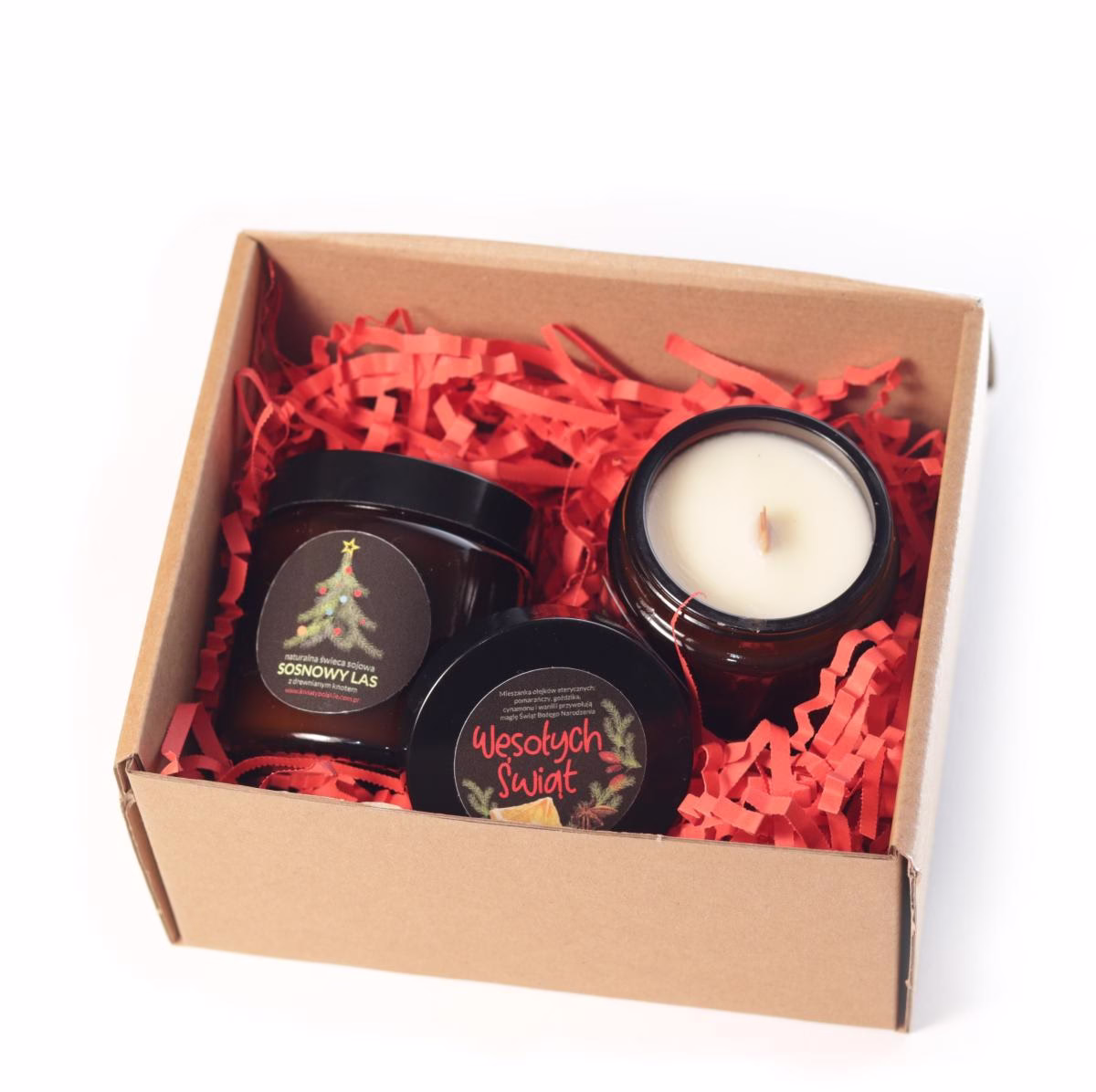Nasze naturalne świąteczne świece sojowa z drewnianym knotem to doskonały prezent na Święta Bożego Narodzenia. Nie zapomnij sprawdzić innych świątecznych zestawów w naszej ofercie